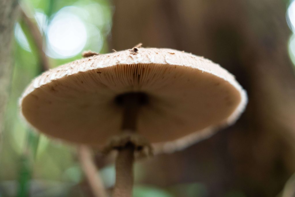 下から見ると、胞子が作られるひだがある。これは風の圧力差を利用して胞子をより遠くに飛ばすために役立つそうだ。