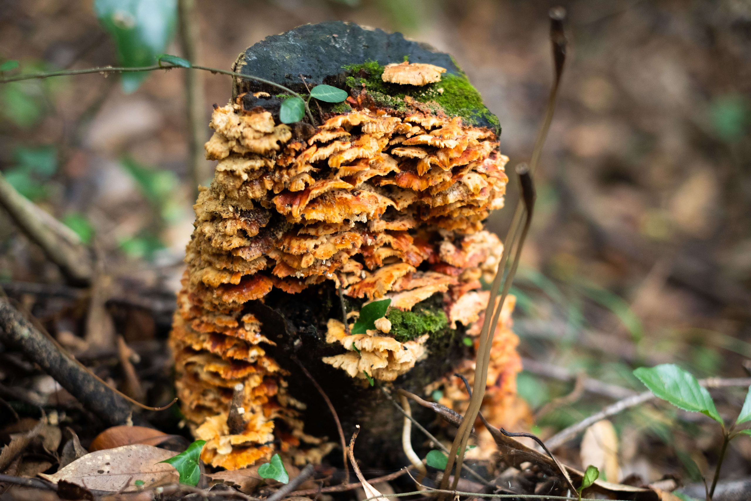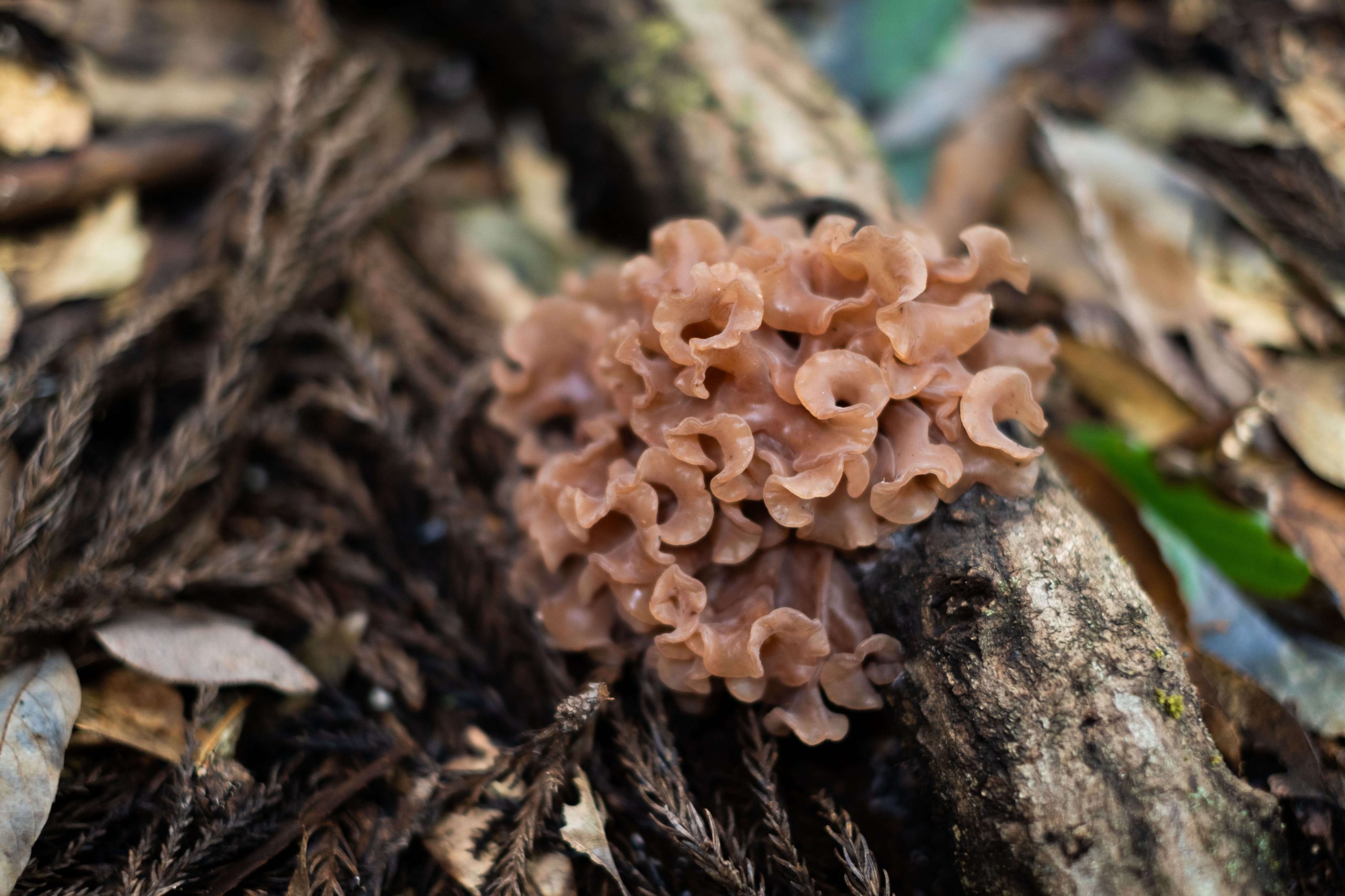 腐食菌のキクラゲの仲間。名前は不明。毒性のあるキノコもあるので、専門家と一緒に観察するのがおすすめ。